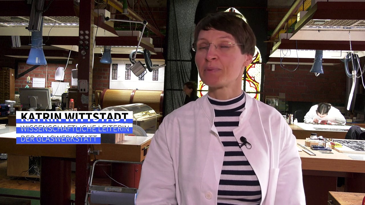 In der Glaswerkstatt der Kölner Dombauhütte werden vier Fenster der Pariser Kathedrale Notre-Dame restauriert, die bei dem Brand in der Kirche im April 2019 beschädigt wurden.