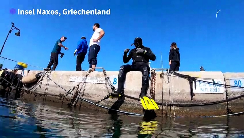 Auf der griechischen Insel Naxos kümmern sich Freiwillige darum, den Meeresboden entlang der malerischen Ägäisküste von Müll zu befreien. Eine Sisyphosarbeit. Eine Tonne ist bereits aus dem Wasser gefischt worden.