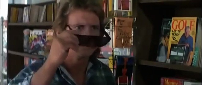 Zwischen Mülltonnen entdeckt der desillusionierte Arbeiter John einen Karton mit Sonnenbrillen, durch die er Werbetafel | dG1fb3lObVdpUXRuRDQ