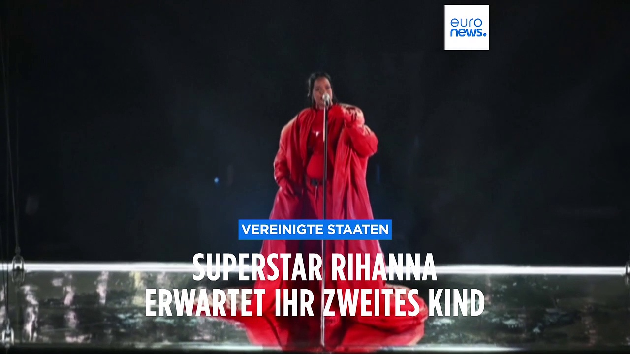 Superstar Rihanna überrascht mit Baby-New: Mit deutlich erkennbarem Bauchansatz präsentierte sich der Superstar vor Millionen TV-Zuschauern während des Finales der National Football League (NFL) der USA.