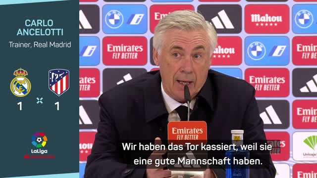 Real Madrid und Atletico Madrid trennen sich im Derby mit 1:1-Unentschieden. Carlo Ancelotti will den Punkteverlust seiner Mannschaft aber nicht auf die Müdigkeit der Spieler zurückführen.
