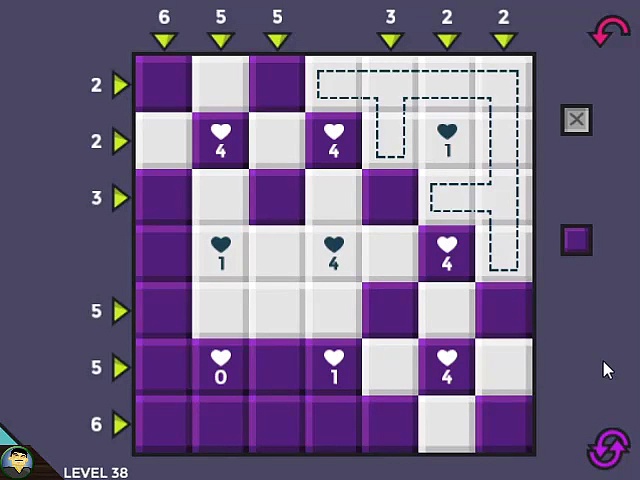 Huch? Nun gibt es neben dem Herz auch eine Krone als Symbol. Diese heißt, dass die größte Reihe in einer Zeile so viele Elemente wie die angegebene Zahl enthält. Ob ich das wohl hinkriege?
