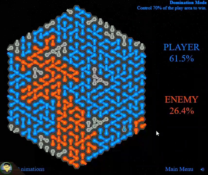 Um dieses Spiel zu gewinnen, muss ich irgendwie das Feld dominieren. Blöderweise will mein Gegner das auch, weshalb wir uns wohl gegenseitig infizieren müssen. Hoffentlich bin ich da erfolgreicher...