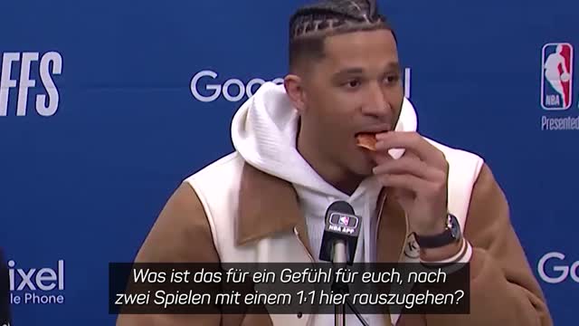 Der Star der New York Knicks, Josh Hart, vergnügte sich neben Teamkollegen Jalen Brunson nach dem Sieg gegen die Miami Heat mit einer Pizza. Die beiden Teams trennten sich nach zwei Spielen mit 1:1.