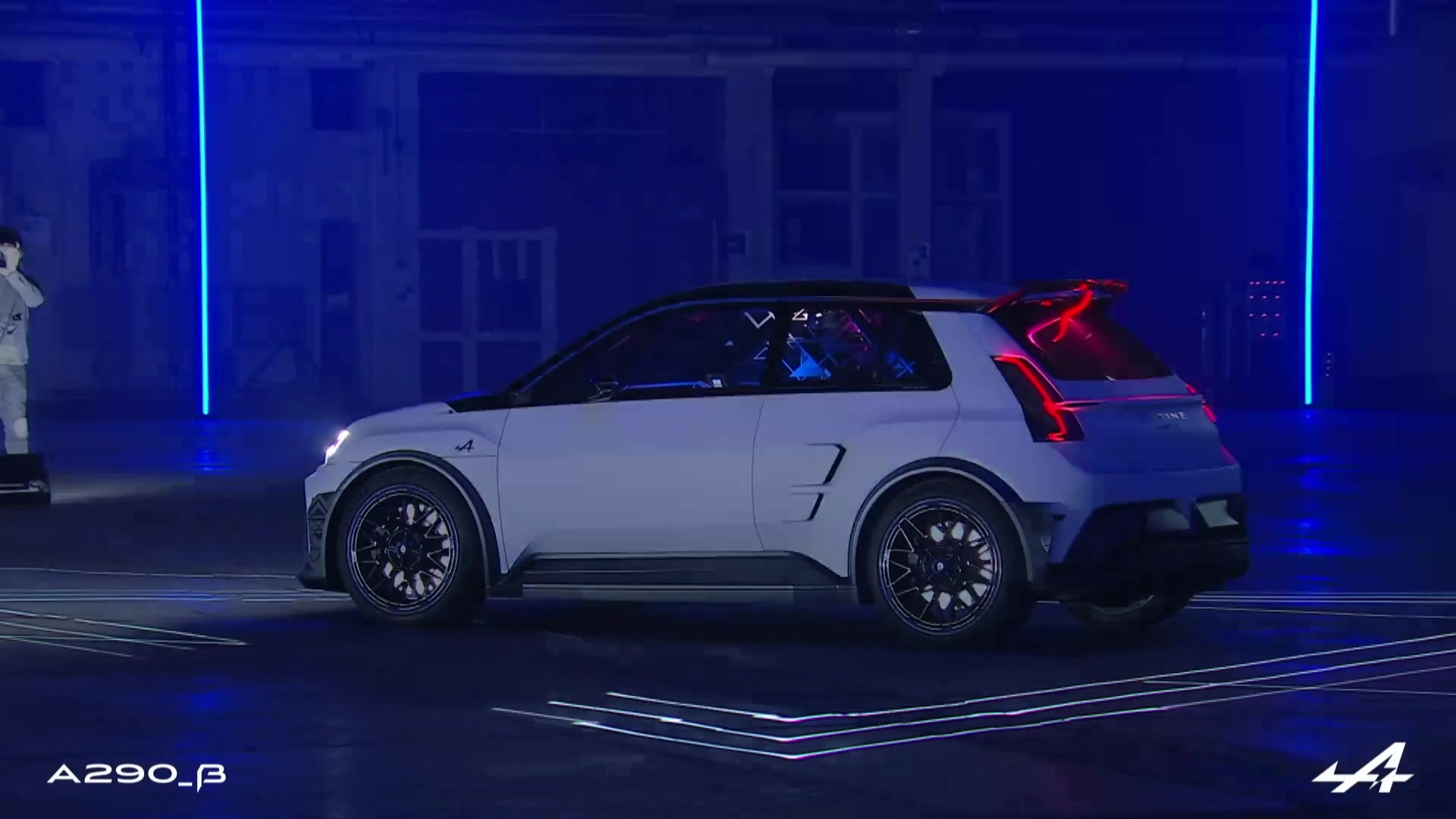 Die vom französischen Motorsportverband FFSA (Fédération Française du Sport Automobile) für den Einsatz auf Rennstrecken zugelassene A290_ß setzt neue Maßstäbe für Leistung und Agilität in ihrer Kategorie. Zwei Elektromotoren an der Front sorgen für dynamische Fahrleistungen und maximalen Fahrspaß. Um eine optimale Verbindung zum Fahrzeug herzustellen, ist bei dem Showcar nach Vorbild der Alpine Studie Alpenglow von 2022 der Fahrersitz wie bei einem Monoposto-Rennwagen zentral positioniert. Mitreisende nehmen rechts und links auf zwei leicht nach hinten versetzten Sitzen Platz. Das Cockpit mit einer Reihe ins Lenkrad integrierter Telemetrie- und Rennstreckenfunktionen ist von der Welt des Motorsports inspiriert.
