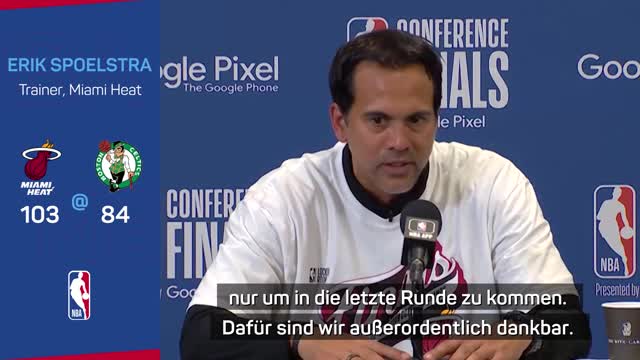 Die Miami Heat stehen nach einem überragenden 103:84-Sieg im Playoff-Spiel sieben gegen die Boston Celtics in den NBA-Finals. Coach Erik Spoelstra ist seinem Team sehr dankbar.