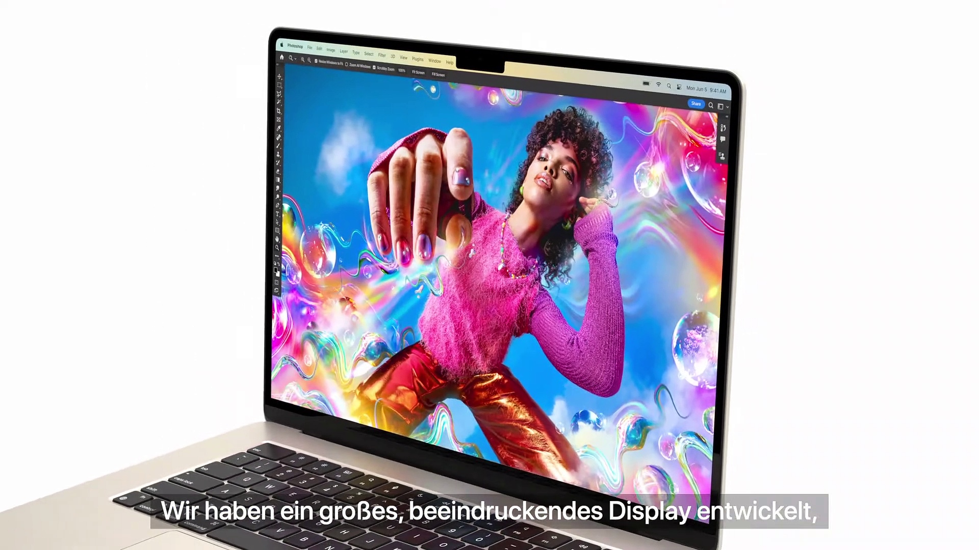 Das neue 15" MacBook - Apple - Das MacBook Air ist jetzt größer. Es kommt jetzt mit einem großen 15" Liquid Retina Display in einem unglaublich dünnen und leichten Design. Und durch die Power des M2 hast du eine ultraschnelle Performance und bis zu 18 Stunden Batterielaufzeit. Jetzt noch sechs Lautsprecher mit beeindruckender 3D Audio Technologie dazu, eine 1080p Kamera und seine einfache Art, mit dem iPhone zusammenzuarbeiten, und du hast den 15" Laptop, auf den wir alle gewartet haben.