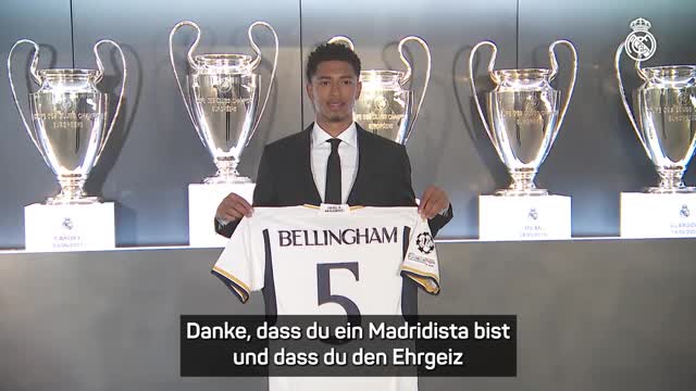 Florentino Pérez heißt Jude Bellingham bei Real Madrid Willkommen. Der Präsident bedankt sich beim Youngster, dass er seine Geschichte bei den Blancos weiterschreiben möchte.