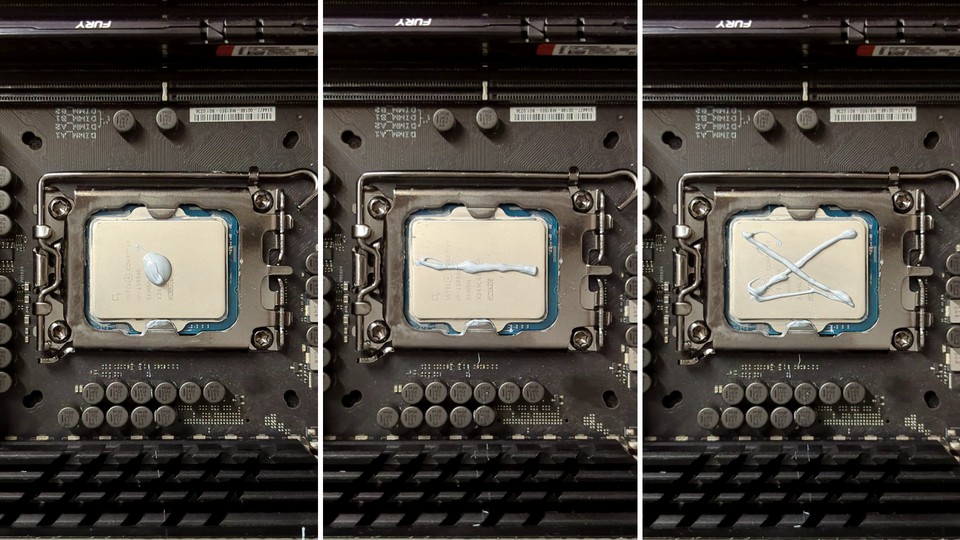 Damit euer Prozessor nicht zu heiß wird, ist das Auftragen von Wärmeleitpaste bei der Monatge sehr wichtig - und nicht vergessen, eventuell vorhandene Plastikfolie auf dem Kühler vorher zu entfernen! Bei der Frage, wie genau man die Wärmeleitpaste am besten aufträgt, scheiden sich allerdings die Geister. <br /> <br /> Damit ihr einen besseren Eindruck davon bekommt, wie sich beliebte Muster bei der Verteilung unterscheiden, wenn ihr die Paste nicht manuell auf der gesamten Fläche aufbringt, haben wir dieses kurze Video dazu erstellt. Passende Messungen zu den Unterschieden bei der Temperatur findet ihr in einem übergeordneten Artikel zu diesem Thema unter dem folgenden Link: <br /> <br /> Unterschätztes Tuning-Potenzial für den PC oder egal: Wie wichtig ist der richtige Umgang mit Wärmeleitpaste? <br /> <br /> Bedenkt allerdings, dass dieses Video nur einen groben Eindruck von der Verteilung vermitteln kann. Wie genau sie ausfällt, hängt von mehreren Faktoren ab. Neben der Menge und der verwendeten Paste spielt auch der Druck, der vom CPU-Kühler ausgeübt wird eine wichtige Rolle. <br /> <br /> Ebenfalls wichtig, zu wissen: An den Rändern einer CPU wird am wenigsten Kühlung benötigt, da sich die entscheidenden Elemente beziehungswesie der Prozessor-Die in ihrem Zentrum befinden.