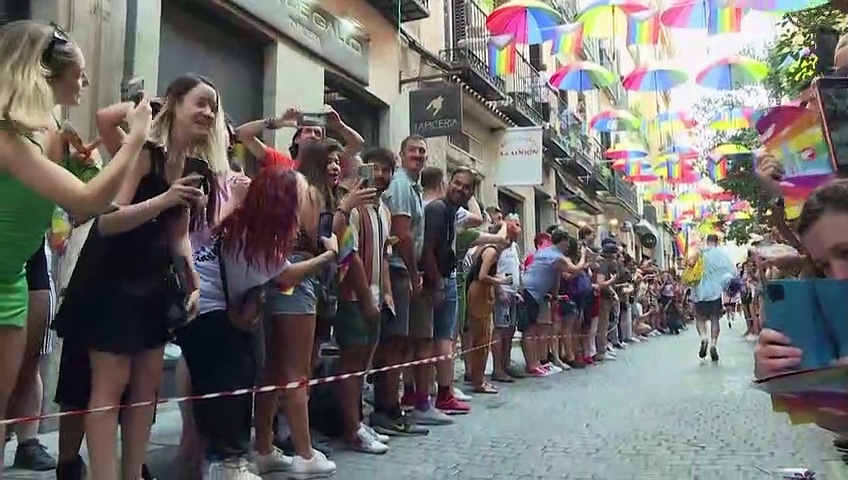 In der spanischen Hauptstadt Madrid hat im Rahmen des LGBTQ-Festivals ein High-Heels-Rennen stattgefunden. Einige Teilnehmende traten den Wettkampf auf 15 Zentimeter hohen Stöckelschuhen an.
