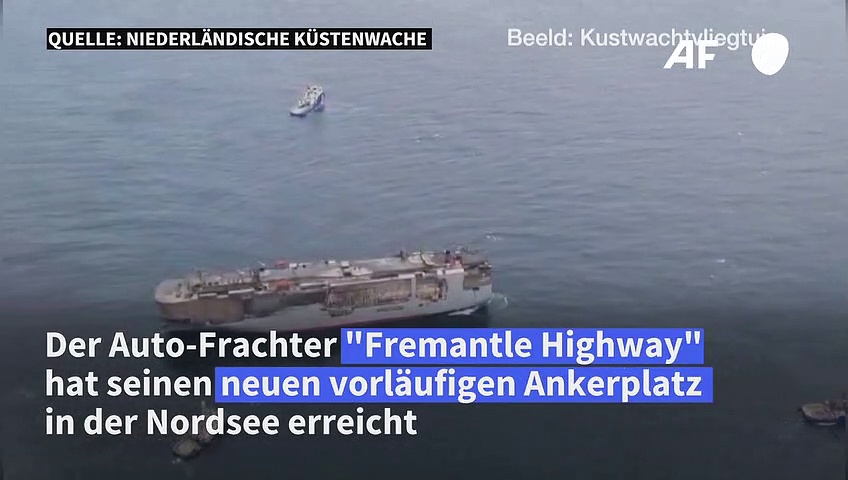 Der Auto-Frachter "Fremantle Highway" hat seinen neuen vorläufigen Ankerplatz in der Nordsee erreicht: Er wurde zu einer Position nördlich der niederländischen Inseln Ameland und Schiermonnikoog geschleppt. Nach dem Brand soll das Schiff nun in ruhigeren Gewässern inspiziert werden.