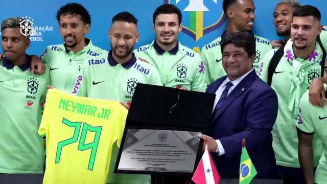 Neymar erzielte seinen 78. und 79. Treffer für Brasilien und ist damit zum Rekordtorschützen der Seleção geworden. Im Anschluss erhält der 31-Jährige eine Auszeichnung und zeigt sich überglücklich.