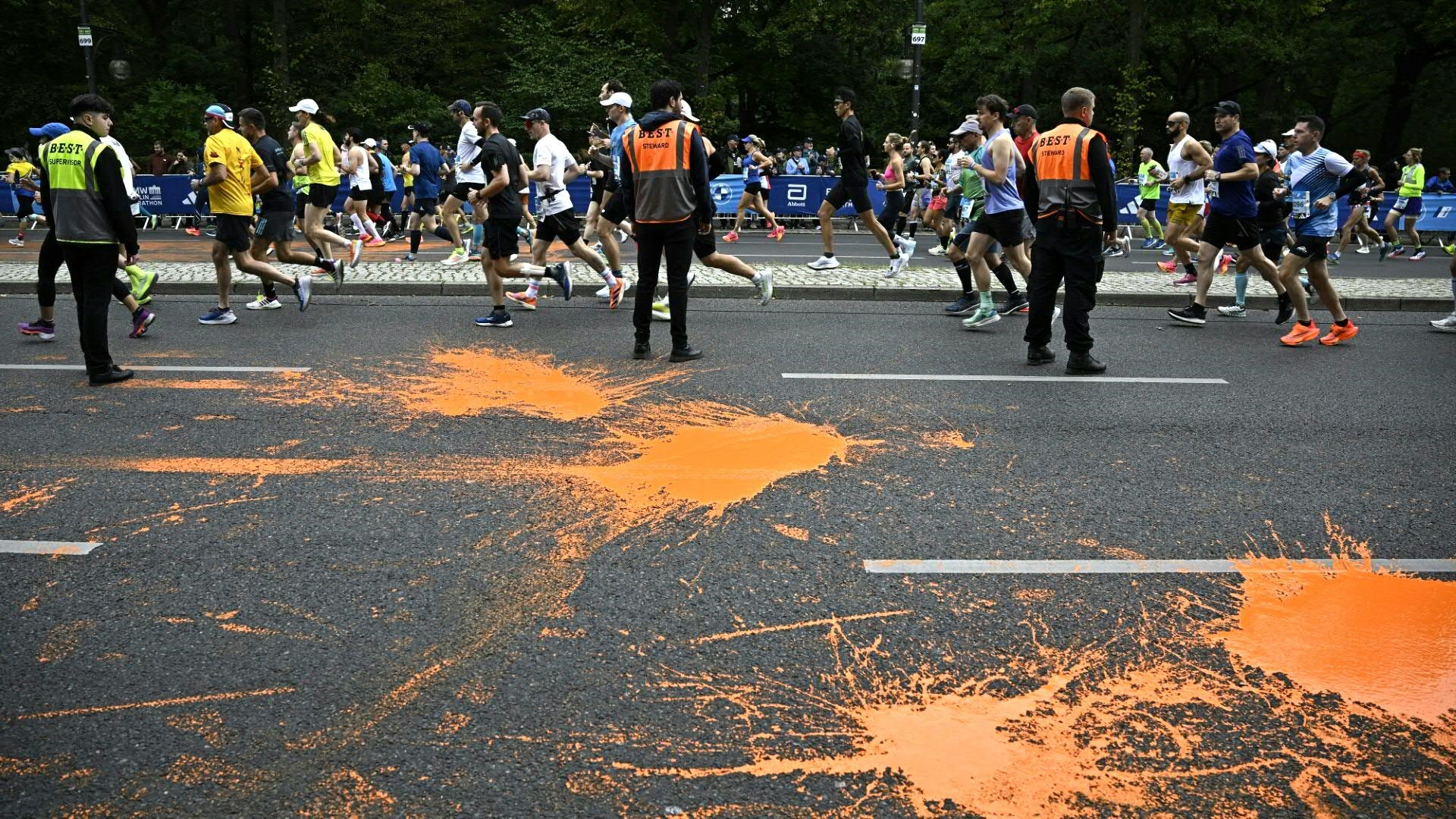 Die von Klimaaktivisten der Letzten Generation angekündigte Störaktion beim Marathon in Berlin ist nach Polizeiangaben größtenteils gescheitert. Acht Aktivisten hätten in der Nähe des Brandenburger Tors Farbe auf der Laufstrecke verschüttet, sagte ein Polizeisprecher. Daran, sich an der Fahrbahn festzukleben, seien sie aber von Einsatzkräften gehindert worden