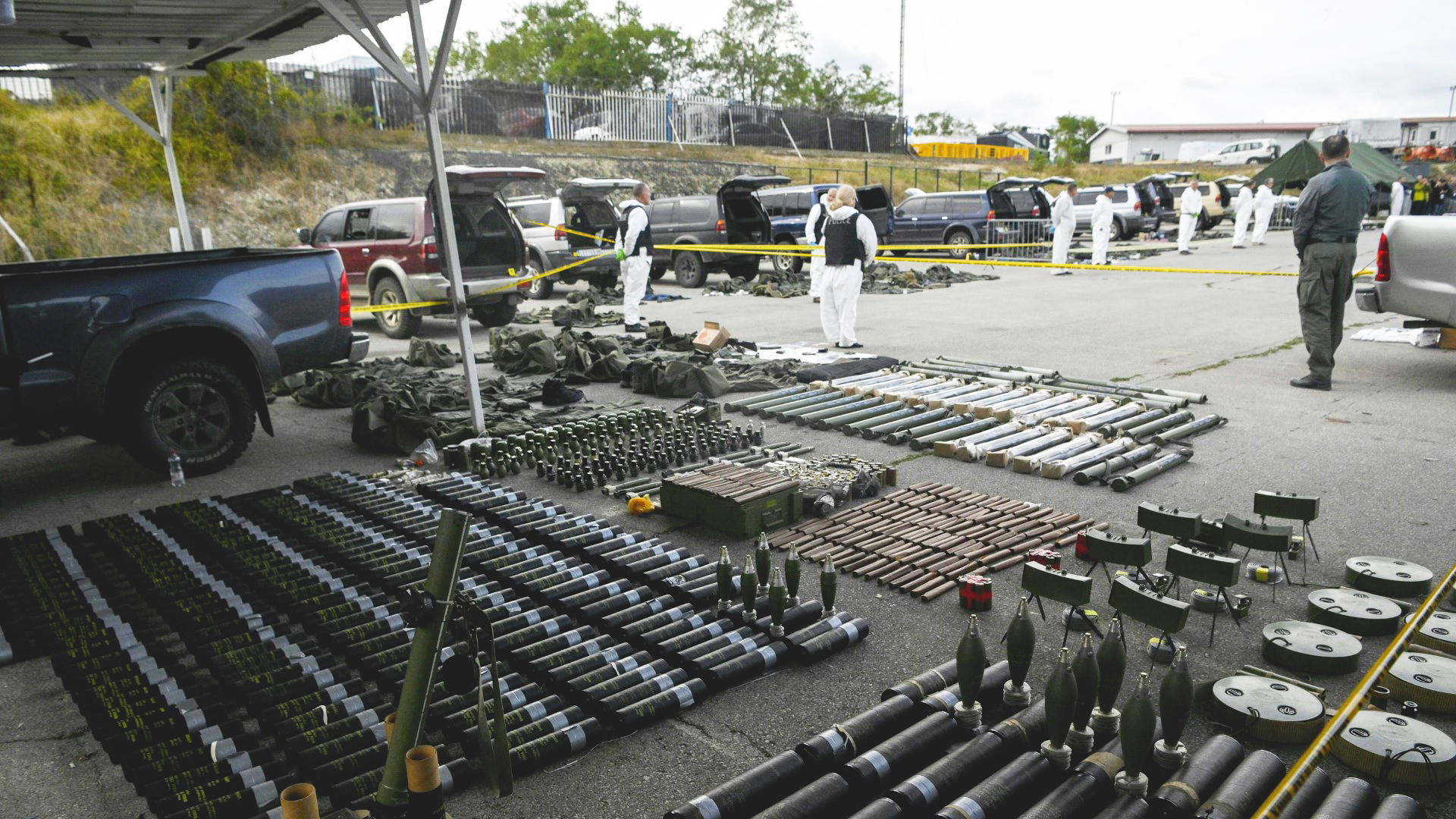 Nach dem Überfall einer Gruppe serbischer Paramilitärs auf Polizisten im Norden des Kosovo hat die Polizei die sichergestellte Ausrüstung der Angreifer präsentiert. Es handele sich um eine große Menge an schweren Waffen, Sprengstoff und Lebensmittel, sagt Innenminister Xhelal Sveçla