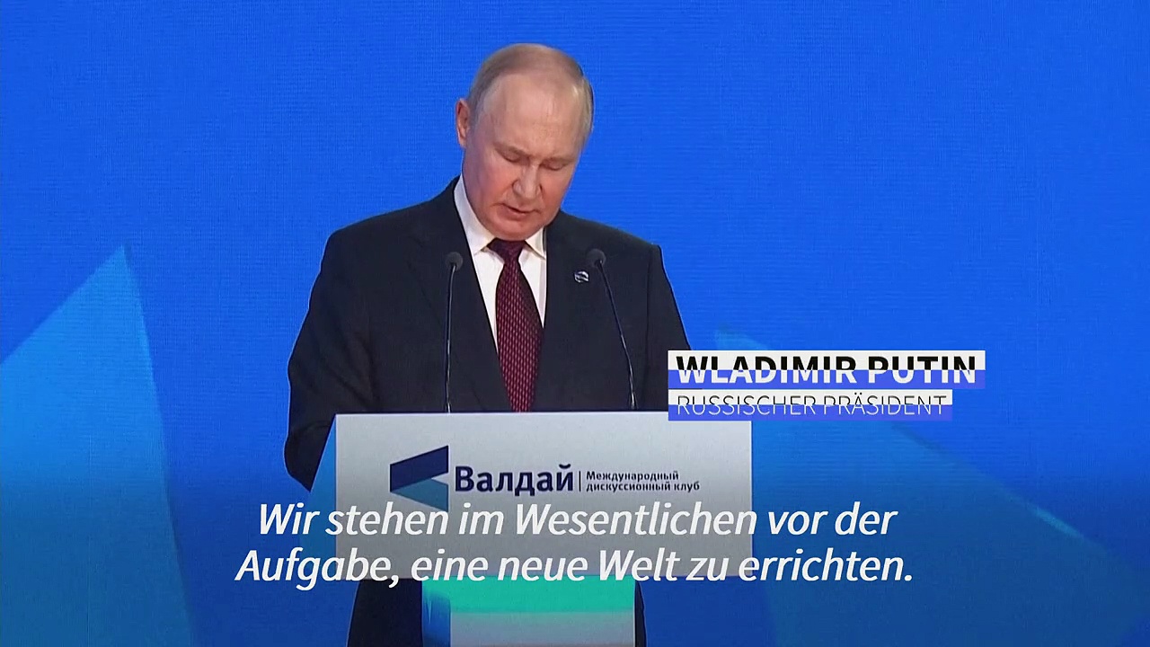 Der russische Präsident Wladimir Putin will nach eigenen Worten "eine neue Welt errichten". Der Kreml-Chef stellte beim politischen Waldai-Forum in der russischen Schwarzmeer-Stadt Sotschi die russische Offensive in der Ukraine in den Zusammenhang mit einer "Hegemonie" des Westens. "Wir stehen im Wesentlichen vor der Aufgabe, eine neue Welt zu errichten", sagte Putin.