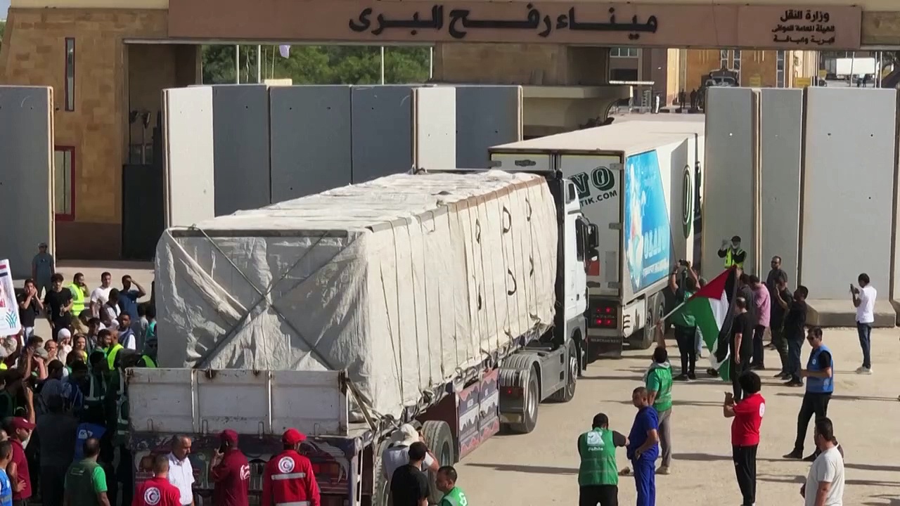 Für die Menschen im Gazastreifen ist neue Hilfe auf dem Weg: Ein dritter Hilfskonvoi mit gut einem Dutzend Lkw kam über den Grenzübergang in Rafah in das abgeriegelte Palästinensergebiet. Die USA hatten zuvor in Absprache mit Israel dauerhafte Hilfslieferungen zugesichert.