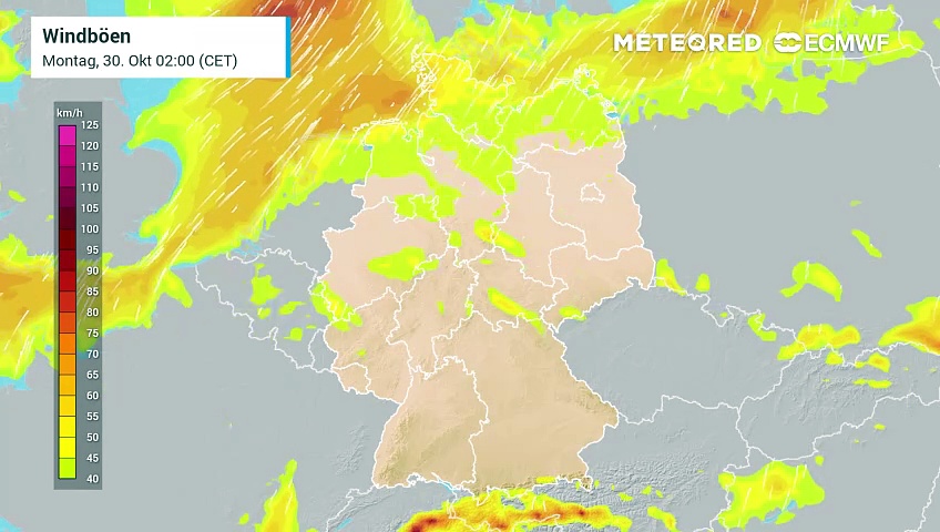 In den kommenden Tagen nimmt der Wind besonders im Westen immer wieder stark zu. Regional kann es über Westeuropa zu Orkanböen kommen.