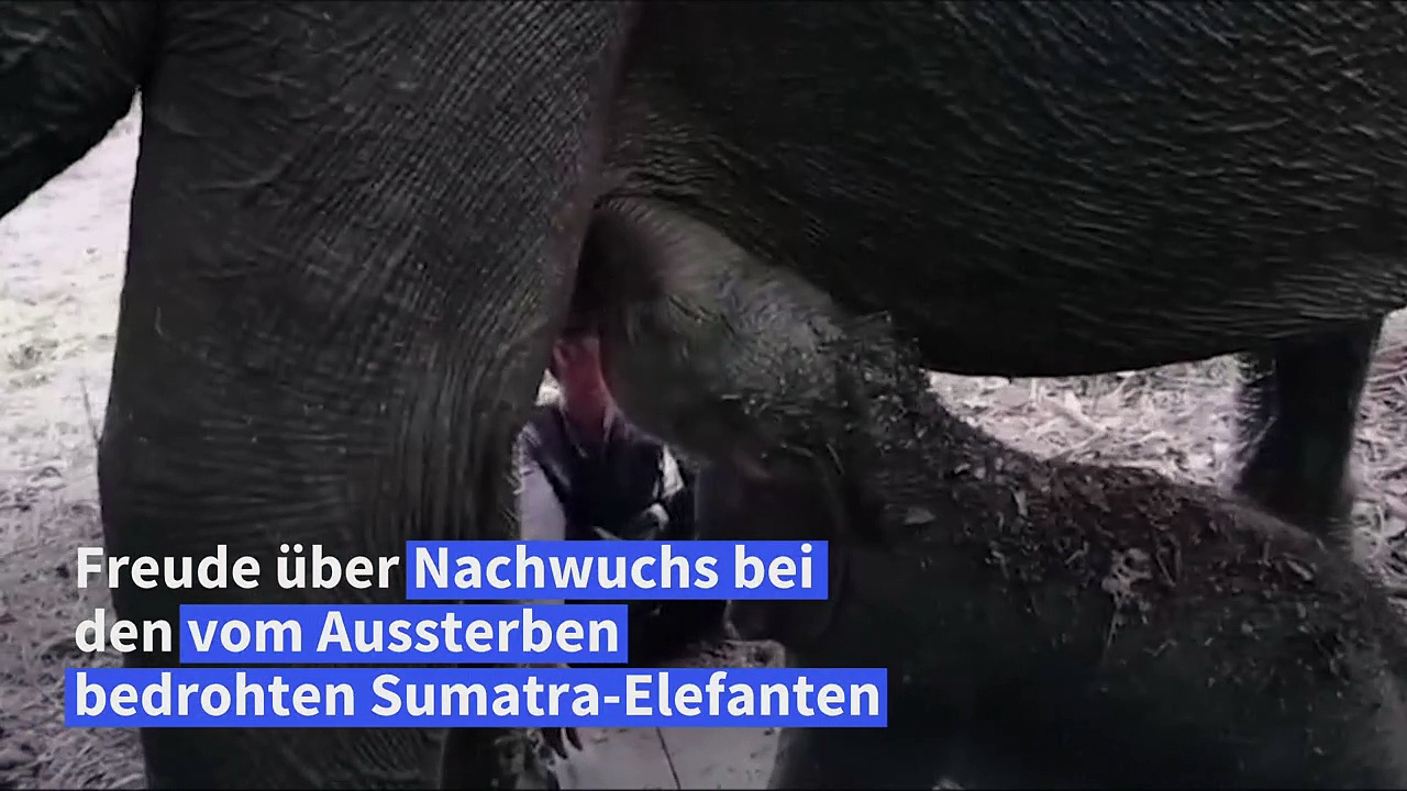 Jubel über Nachwuchs bei den vom Aussterben bedrohten Sumatra-Elefanten: Elefantenkuh Riska hat in einem Schutzgebiet im Süden der Insel Sumatra ein gesundes Kalb zu Welt gebracht.