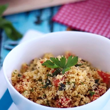 Rezept Vorspeise <br /><br />Begleitet von einem Grill, für ein Picknick oder eine Mahlzeit ohne Kopfschütteln wird das Taboulé perfekt sein! Frisch, genießen Sie dieses Rezept voller Aromen dank der gehackten Kräuter. <br />Hier wird nicht gebacken! Mischen Sie einfach Ihre Lebensmittel zusammen und lassen Sie den Weizengrieß im Kühlschrank aufblasen. Praktisch, wenn Sie keinen Ofen haben ;-) <br />Eine perfekte Alternative auch, wenn Sie ein veganes Rezept unkompliziert zubereiten möchten! Fügen Sie die Rohkost Ihrer Wahl hinzu und los geht's zum Vegan-Test! <br /><br />Zutaten: <br /> - 150 g mittelgroßer Grieß <br /> - 2 Tomaten <br /> - 1/2 Zwiebel <br /> - 10 ml Zitronensaft <br /> - 60 ml Olivenöl <br /> - 1 Petersilie <br /> - 1 Minze <br /> - Salz <br /> - Pfeffer <br /> <br /><br />Siehe Rezept auf der Website: https://www.petitchef.de/rezepte/vorspeise/orientalische-taboule-sehr-einfach-fid-1580875 <br /><br />