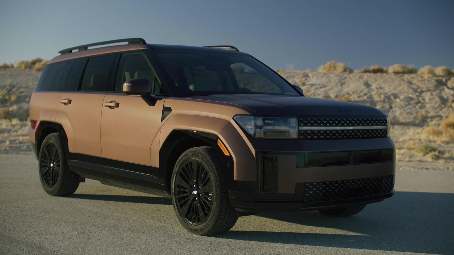 Für den ersten kompletten Modellwechsel des SANTA FE seit 2018 wählte Hyundai eine ungewöhnliche Strategie, indem die Designer den Fokus zuerst auf die Vergrösserung der Heckklappenöffnung legten, bevor sie die Gestaltung der Karosserie angingen. Das Ziel lag in einem erweiterten Kundenerlebnis bei Outdoor-Aktivitäten.<br /><br />Die effiziente, kastenförmige Karosserie und der lange Radstand des neuen Modells verstärken die Präsenz, während das kräftige und dennoch fein gearbeitete Aussendesign genauso in das urbane Umfeld passen wie in die freie Natur.<br /><br />Die Front des All-new SANTA FE macht dank der hohen Motorhaube, den H-förmigen Scheinwerfern und den scharf gezeichneten Kotflügeln einen starken ersten Eindruck. Die H-förmigen Scheinwerfer und der untere Teil der Frontschürze sind vom Hyundai-Emblem inspiriert und erzeugen ein markantes und unverwechselbares Erscheinungsbild.<br /><br />Der längere Radstand verleiht dem All-new SANTA FE eine Form von Erhabenheit, dessen klare Seitengestaltung durch eine kühne Dachlinie, grosszügiges Volumen um die Kotflügel, robuste Radkästen, einen kürzeren vorderen Überhang und kräftig gestaltete 21-Zoll-Räder ergänzt wird.<br /><br />Die Heckansicht mit der besonders breiten Heckklappe verstärkt das Gefühl von Solidität und schafft gleichzeitig einen schlichteren, skulpturalen Look. Die H-förmigen Rückleuchten harmonieren mit den vorderen H-Leuchten und verleihen dem All-new SANTA FE eine unverwechselbare Präsenz auf der Strasse.<br /><br />Weltweit steht das neue Modell in 10 Aussenfarben im Angebot: Abyss Black Pearl, Creamy White Pearl, Creamy White Matte, Typhoon Silver Metallic, Magnetic Gray Metallic, Ocado Green Pearl, Terracotta Orange, Cyber Sage Pearl, Earthy Brass Metallic Matte und Pebble Blue Pearl.<br /><br />Ausstattungsdetails und Technik können je nach Markt variieren.