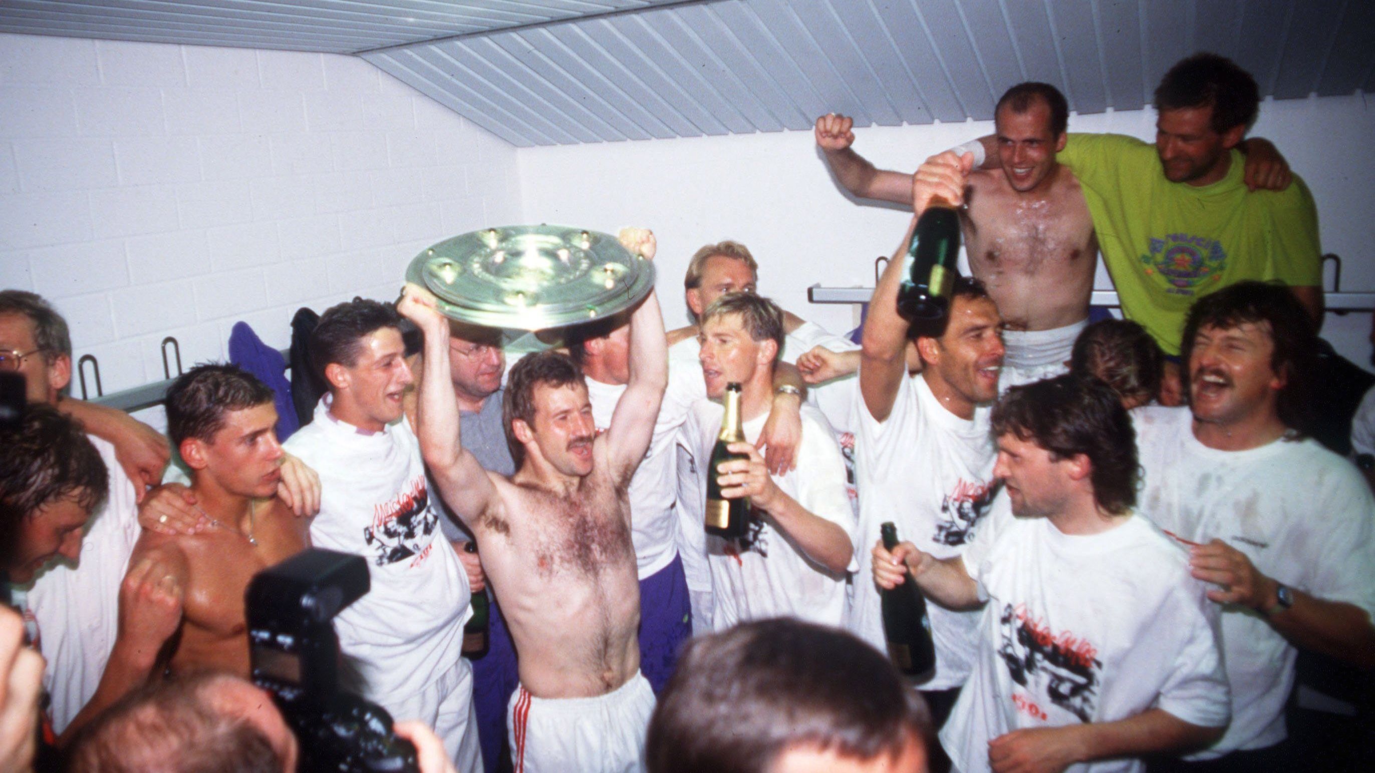 Am letzten Spieltag der Bundesliga-Saison 1991/92 teilten sich drei Mannschaften punktgleich die ersten Plätze. Frankfurt war Favorit auf den Titel. Auch unser Reporter George Moissidis wurde nur für den unwahrscheinlichen Fall eines Stuttgarter Meistertitels nach Leverkusen beordert.
