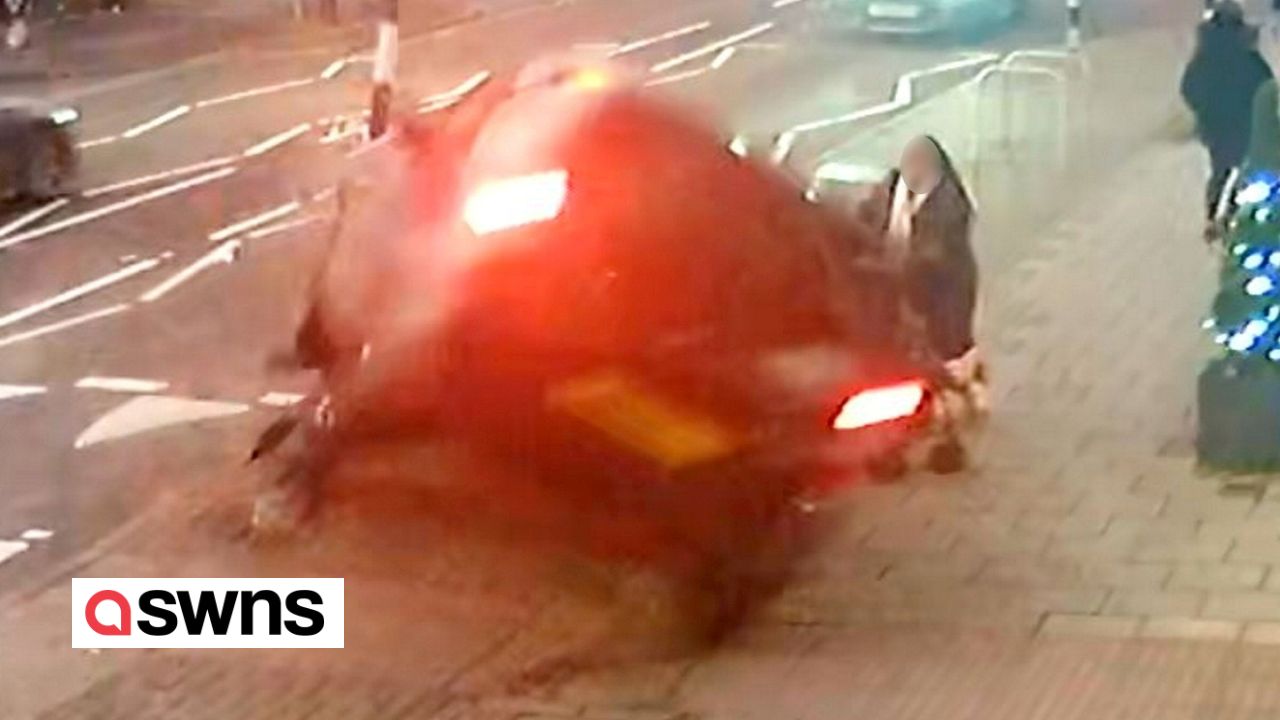 Eine heldenhafte Mutter brachte ihre Tochter in Sicherheit, SEKUNDEN bevor ihr Kinderwagen unter einem Auto zerquetscht wurde.<br /><br />Die Beiden konnten gerade noch verhindern, dass sie von dem Fahrzeug getötet wurden, nachdem eine Frau gegen einen Laternenpfahl geprallt war.<br /><br />Dieses Video wurde gefilmt 16.12.2023.