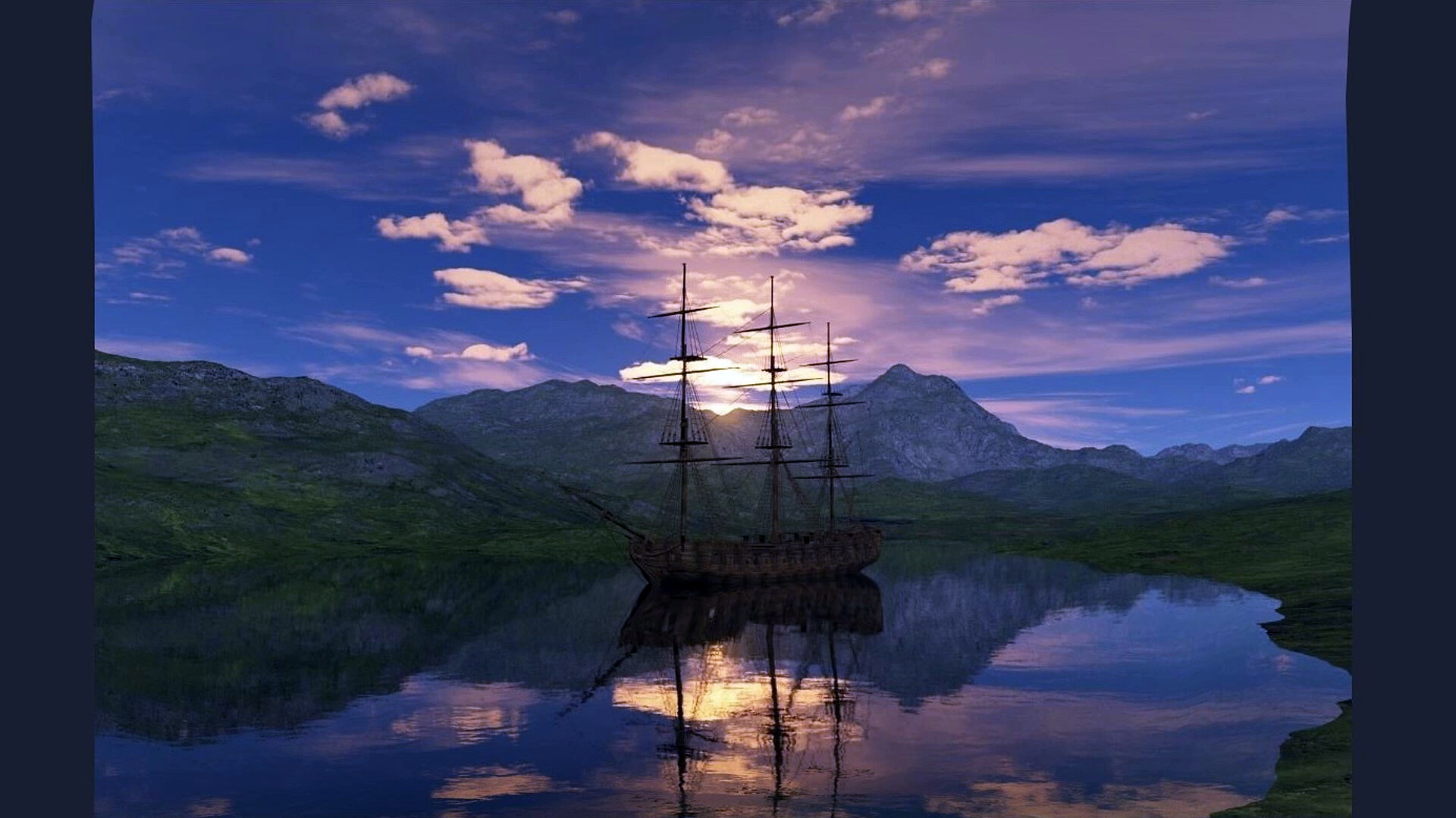 » Landschaft » Meer » Schiff » Segelschiff » Bucht » Sonne
