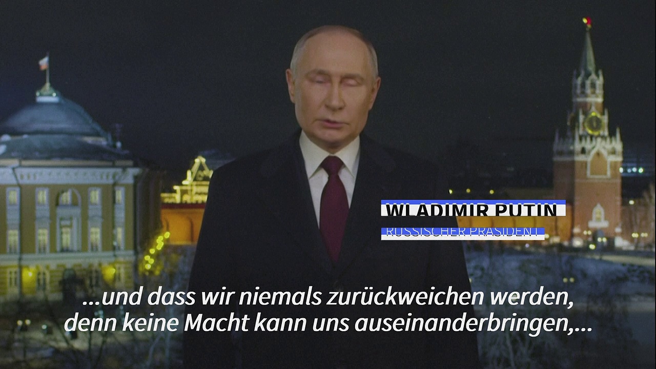 In seiner Neujahrsansprache hat Russlands Präsident Wladimir Putin versichert, dass sein Land "niemals" zurückweichen werde. Auch wenn er die Ukraine nicht direkt erwähnte, so gab es doch eine Reihe von Anspielungen. Er dankte er ausdrücklich den russischen Soldaten und nannte sie Helden.