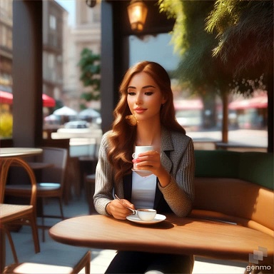 AI Model drinks coffee in an bar