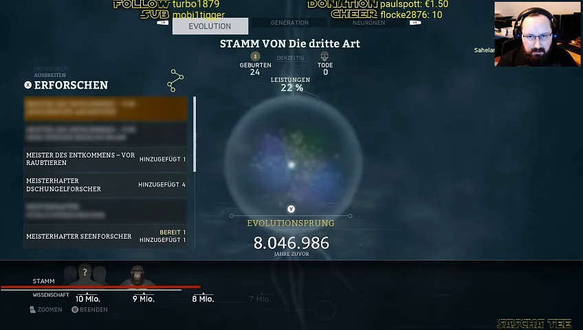 Bearbeiten<br />Mit Ancestors: The Humankind Odyssey begeben wir uns auf die Spuren der allerersten Vorgänger der Menschheit. Wir durchlaufen die Evolution! Wir beginnen, indem wir uns von Ast zu Ast schwingen. Dabei lernen wir den Gefahren des Dschungellebens auszuweichen. Doch das erlernte muss den kommenden Generationen erfolgreich weiter gegeben werden. Ansonsten ist das Wissen verloren. <br />Natürlich darf das tägliche Leben dabei nicht zu kurz kommen. Unser Clan muss Essen, Trinken und Schlafen. Ob wir uns entwickeln, oder untergehen, ist nur eine Frage der Zeit, des Geschicks und wie klug ich mich anstelle... <br /><br />Genre: Survival<br />Entwickler: Panache Digital Games<br />Publisher: Private Division<br />Veröffentlichung: 27.08.2019<br />Offizielle Seite: [https://ancestorsgame.com/|https://ancestorsgame.com/]<br /><br />Game-Tags: #Ancestors #TheHumankindOdyssey #Surival<br /><br />Ganze Reihe: https://dailymotion.com/rss/playlist/x836rr<br />Weitere Lets Plays: [https://saschatee.de|https://saschatee.de/]<br /><br />Twitch: [https://www.twitch.tv/satishu|https://www.twitch.tv/satishu]<br />YouTube: [https://www.youtube.com/@satishu|https://www.youtube.com/@satishu]<br />Dailymotion: [https://www.dailymotion.com/saschatee|https://www.dailymotion.com/saschatee]<br />TikTok: [https://www.tiktok.com/@satishushorts|https://www.tiktok.com/@satishushorts]<br />Twitter: [https://twitter.com/SaschaTee|https://twitter.com/SaschaTee]<br />Mastodon: [https://mastodon.cloud/@SaschaTee|https://mastodon.cloud/@SaschaTee]