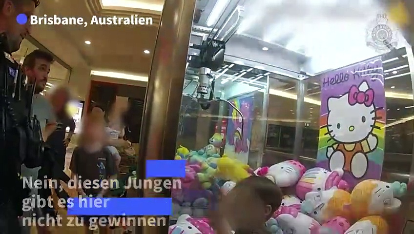Im australischen Brisbane ist ein drei Jahre alter Junge unbemerkt in einem Einkaufszentrum in einen Greifautomaten geklettert. Die Polizei befreite ihn schließlich aus seiner missliche Lage - mit einem Hammer.