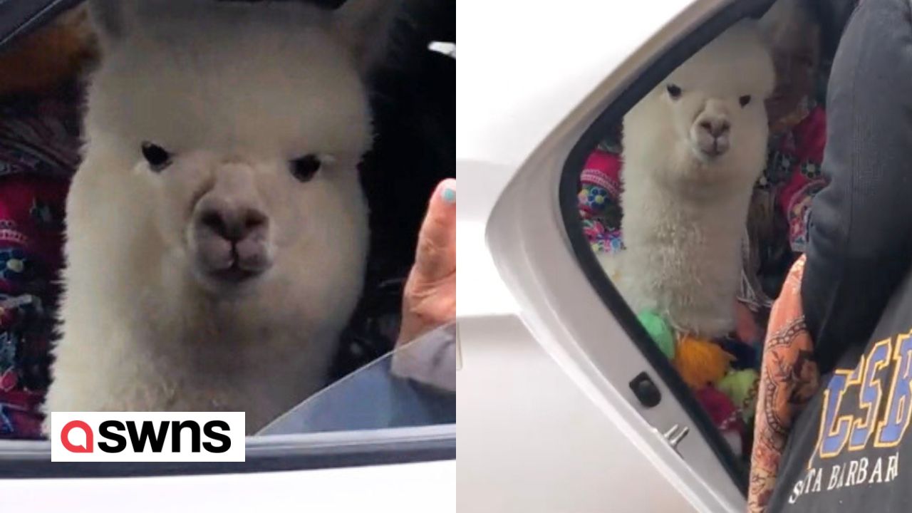 Dies ist der bizarre Moment, als Touristen in Peru ein Taxi fahrendes Alpaka entdeckten. <br /><br />Panchita, das Alpaka, nimmt jeden Tag das Taxi, um die Gäste zu begrüßen und Fotos zu machen.<br /><br />Frank, ein Tourist, konnte diesen bizarren Moment auf Film festhalten.<br /><br />Das Video wurde im Januar 2024 gedreht.