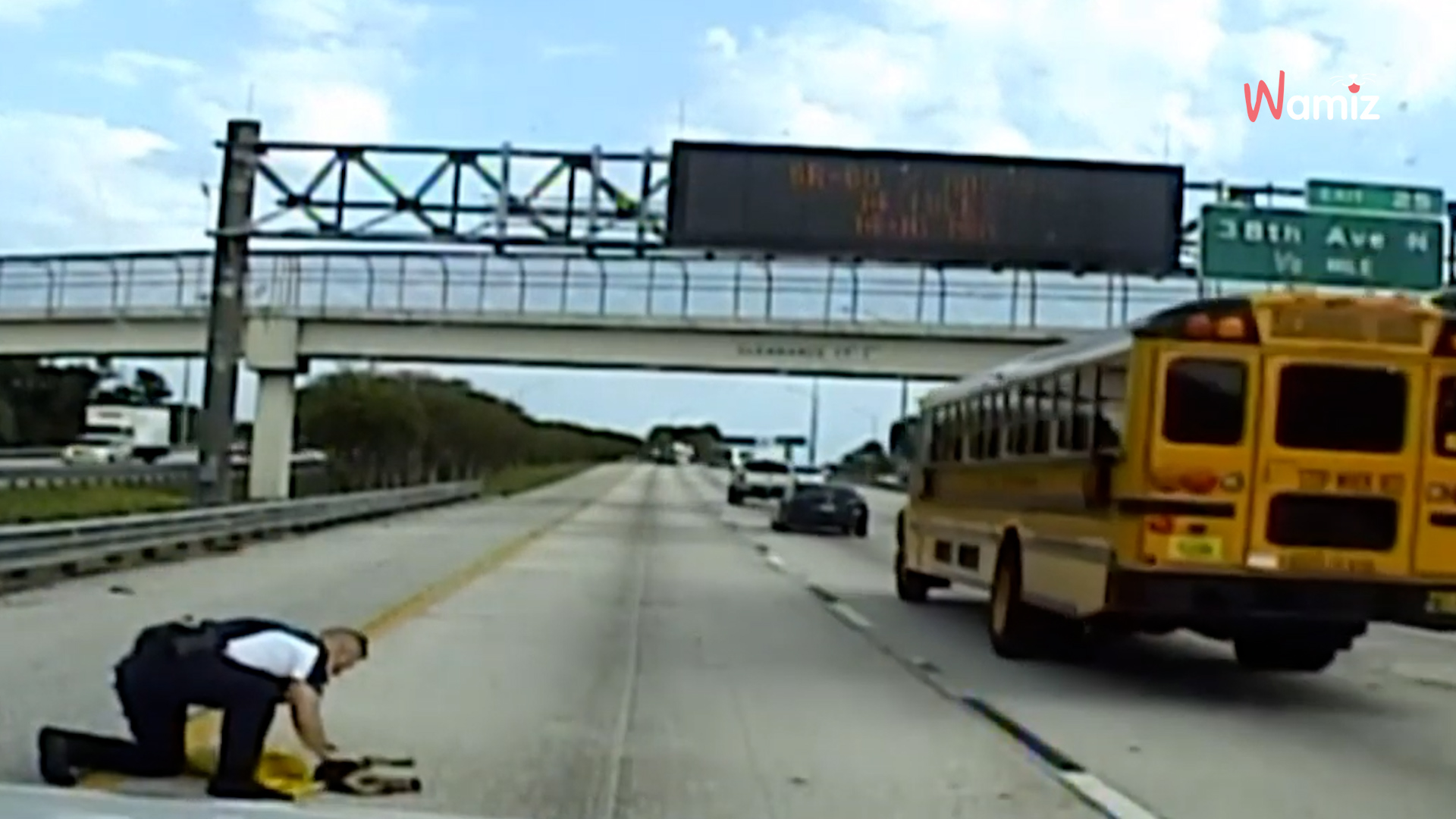 Was ein Polizist in Tampa, Florida getan hat, macht ihn zu einem echten Helden! Denn nur weil er so geistesgegenwärtig und schnell reagiert, wird die vierspurige Autobahn nicht zur Todesfalle!