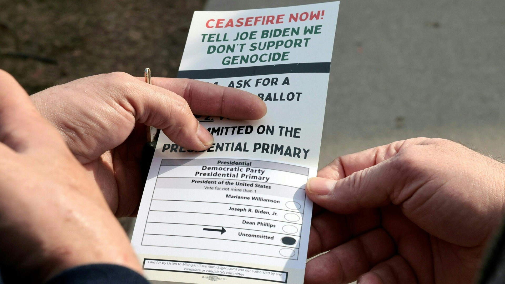 US-Präsident Joe Biden hat die Präsidentschaftsvorwahl der Demokraten im Bundesstaat Michigan gewonnen. Allerdings wurden mehr als 50.000 Stimmzettel als "uncommitted" (deutsch: "neutral") angekreuzt - damit verweigerten Biden mehr Wähler die Stimme als erwartet. Aktivisten hatten zu Protest gegen Biden wegen seiner Unterstützung für Israel aufgerufen