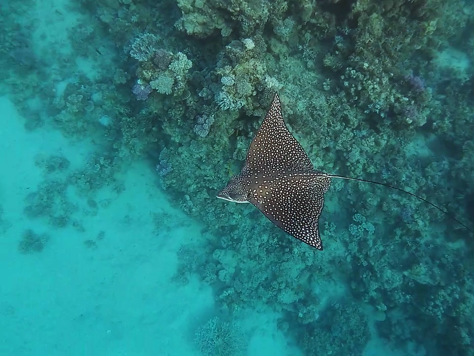 Lachen in der Schnorchelmaske ist bekanntlich ungünstig. Musste mich daher schwer zurückhalten. Außerdem hatte ich alter Sack gut zu tun, dem Ganzen zu folgen. Keine Ahnung, ob er die unerwünschte Begleitung noch irgendwann los geworden ist.<br /><br />It was hard not to laugh watching this which obviously in a diving mask would have been unwise. Also this old geezer had quite some trouble keeping up with those two creatures. Therefore we don't know if the ray ever managed to rid itself from the unwanted company.
