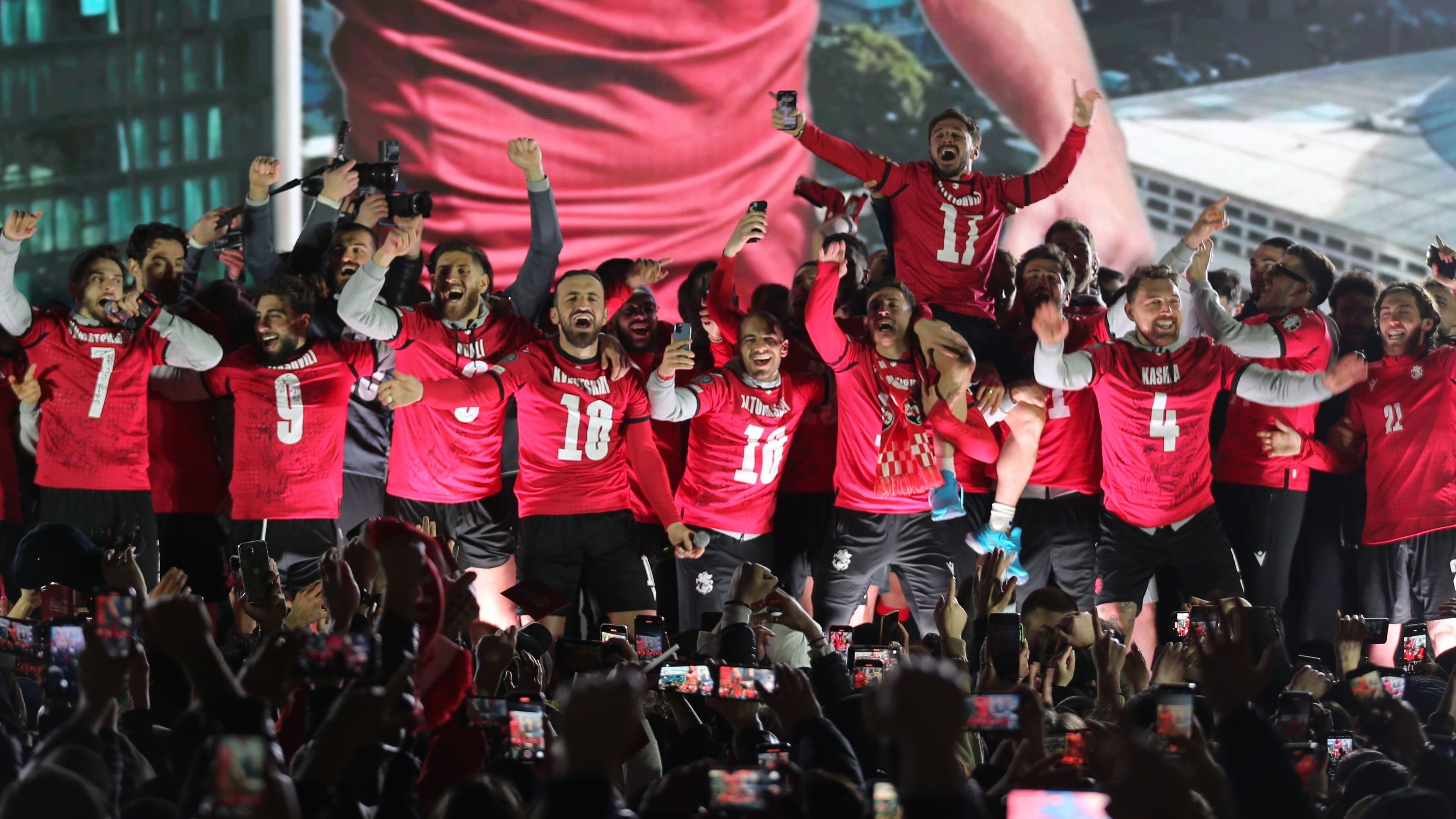 Georgien steht erstmals in der Geschichte des Landes in der Endrunde einer Europameisterschaft. Der Jubel nach der erfolgreichen Qualifikation nach dem Elfmeterschießen gegen Griechenland am Dienstag kannte keine Grenzen.