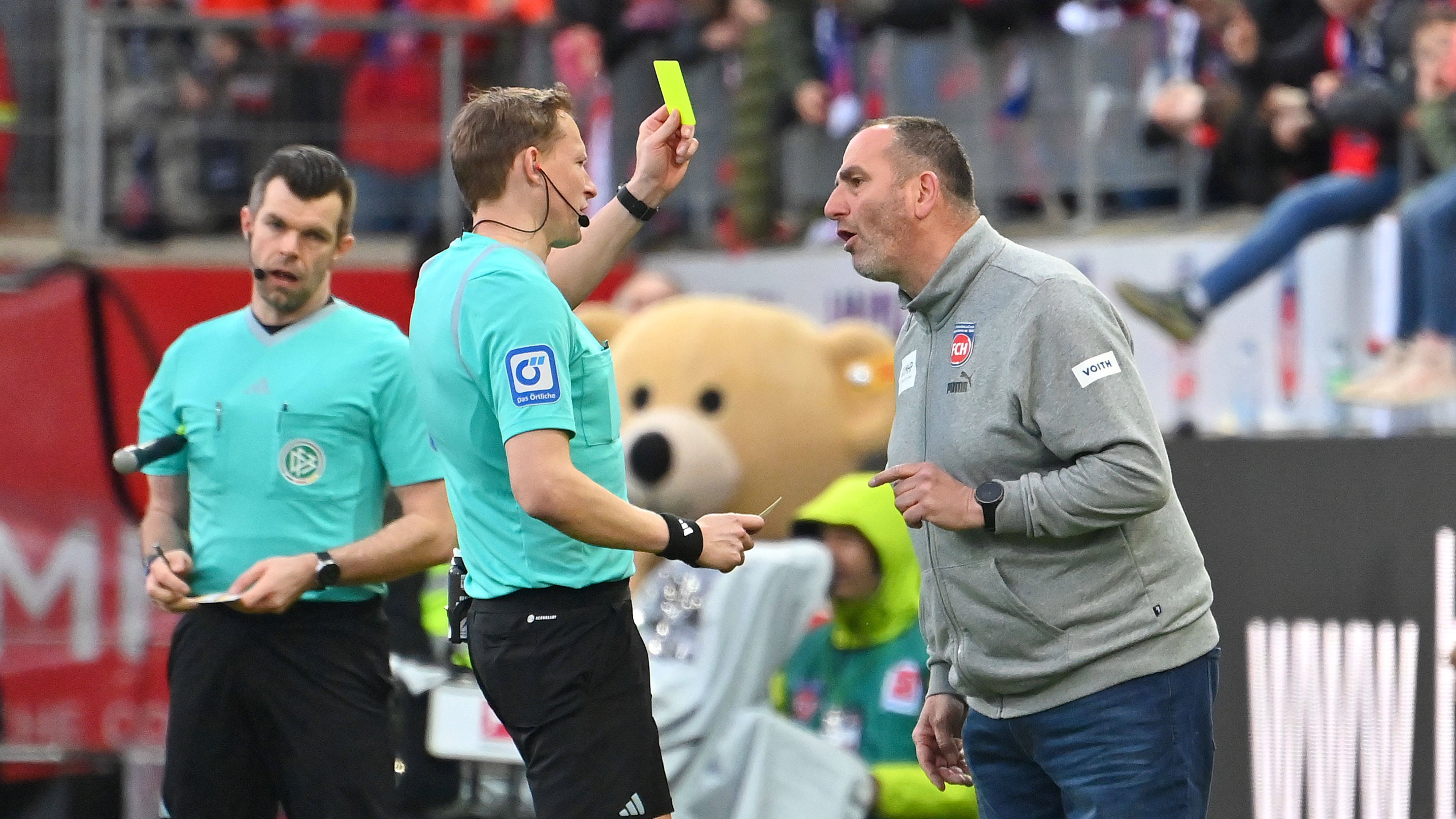 Heidenheims Trainer Frank Schmidt steht vor dem Duell gegen RB Leipzig bei drei gelben Karten. Der Trainer des FC Heidenheim äußert sich gewohnt locker zu einer möglichen Sperre bei einer weiteren Verwarnung.