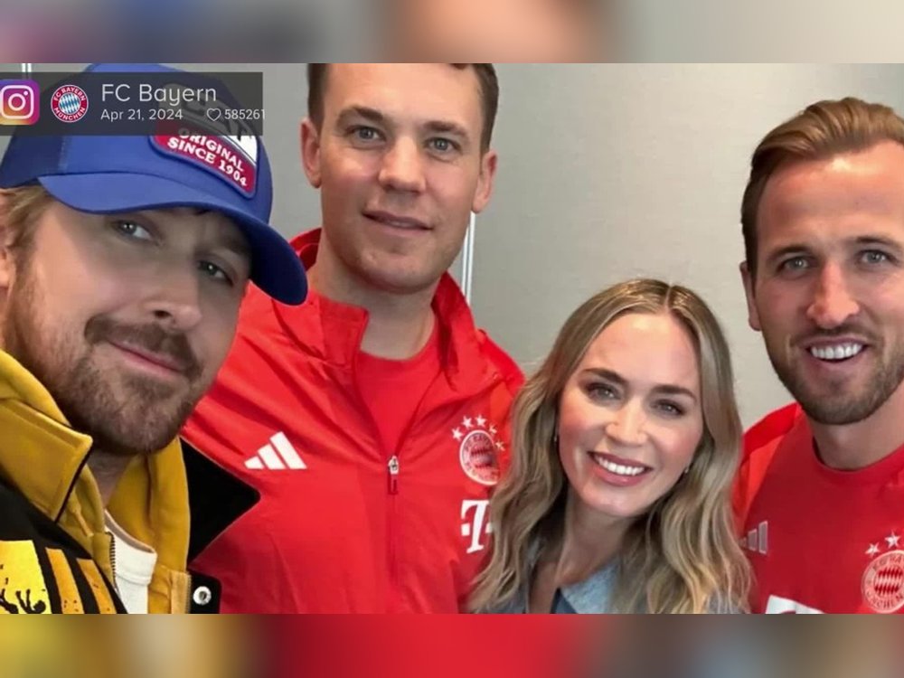 Die Bayern-Spieler Manuel Neuer und Harry Kane haben sich in Berlin mit den Hollywood-Stars Ryan Gosling und Emily Blunt getroffen. Sie posierten zusammen für einige Fotos.