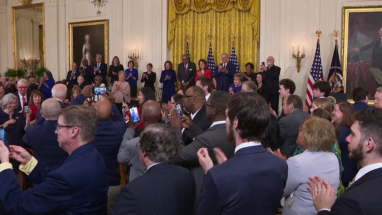 US-Präsident Joe Biden hat bekannten Politikerinnen und Politikern der Demokraten die Freiheitsmedaille verliehen. Er würdigte unter anderem die frühere Vorsitzende des Repräsentantenhauses, Nancy Pelosi, für ihren Einsatz zum Schutz der Demokratie beim Sturm von Trump-Anhängern auf das Kapitol.