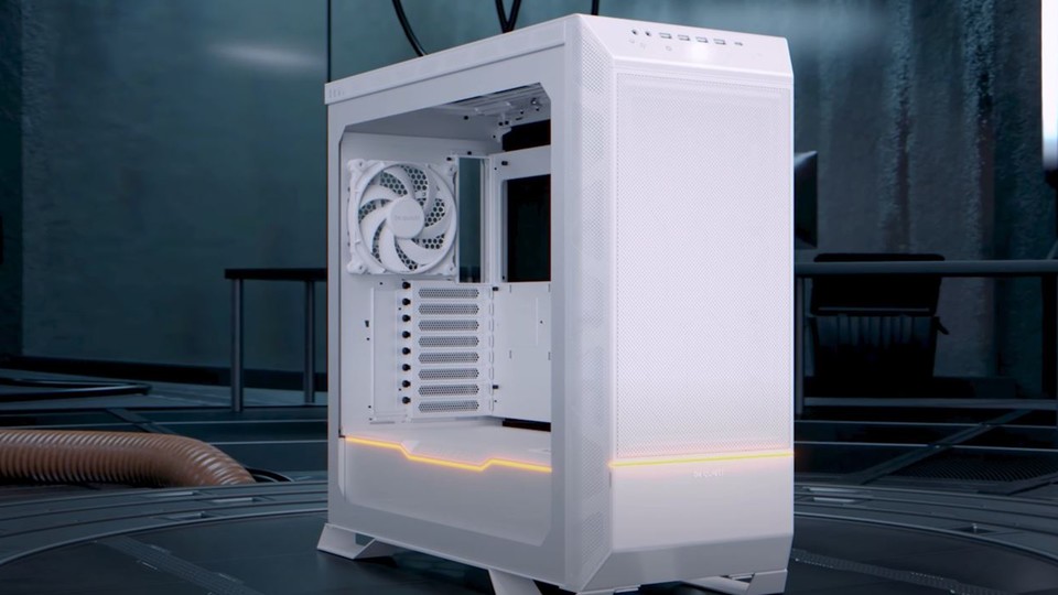 Der Trailer zeigt das neue Gehäuse von be quiet!, das seit dem 05. März erhältlich ist. Unter dem Namen Dark Base Pro 901 White bekommt ihr ein Big Tower mit folgenden Specs: <br /> <br /> Grundsätzliches: <br /> <br /> - Gehäusegröße inkl. Ständer (L x B x H): 604 x 275 x 569 Millimeter <br /> <br /> - Nettogewicht: 18 Kilogramm <br /> <br /> - Netzteil-Formfaktor: ATX PS/2 <br /> <br /> Funktionen: <br /> <br /> - Austauschbare obere Abdeckung und Frontplatte <br /> <br /> - Lüfter- und Kühlerhalterungen mit integrierter Lüfternabe vorne und oben <br /> <br /> - 3 Silent Wings 4 140-mm-PWM-Lüfter in Weiß <br /> <br /> - I/O-Panel (vorne) zur Steuerung von ARGB und den Lüftern <br /> <br /> - Betrieb von E-ATX-Motherboards und Radiatoren bis 420 mm möglich <br /> <br /> - ARGB-Beleuchtung auf der Vorderseite und der Netzteilabdeckung <br /> <br /> Preis: Bei diversen Anbietern ist das Gehäuse aktuell für etwa 280 Euro zu haben. <br /> <br /> Falls ihr aktuell auf der Suche nach dem passenden Gehäuse seid, haben wir zwei Artikel für euch: <br /> <br /> - Dieses PC-Gehäuse ist gleichzeitig ein Bildschirm! RTX 4090 & Touchscreen für volle Kontrolle beim High-End-Gaming <br /> <br /> - Die besten PC-Gehäuse für Spieler im Vergleich – Kaufberatung