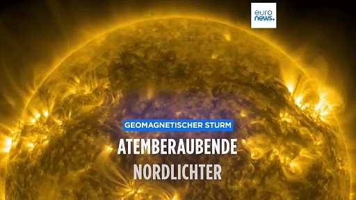 Nachdem ein ungewöhnlich starker Sonnensturm die Erde getroffen hat, sind in Europa und Nordamerika bis weit in südliche Gefilde Polarlichter zu sehen. Sie stehen in Zusammenhang mit einem Plasmaausbruch der auf einen Sonnenfleck zurückgeführt wird, der 16-mal so groß wie die Erde ist.