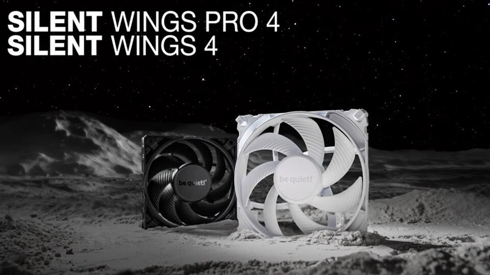 Be quiet! stellt im Trailer seinen Lüfter Silent Wings (Pro) 4 White vor. Um zu beweisen, wie leise die Lüfter sind, arbeitet der Clip mit dem Narrativ des Weltalls. <br /> <br /> Anders als es uns die Star Wars Filme vermitteln, gibt es dort nämlich keinerlei Geräuschkulisse. Der offensichtliche Grund: Eine tobende Weltraumschlacht ohne Explosionen und das Heulen von Laserwaffen und Raketen würde schnell zum Stummfilm verkommen. <br /> <br /> Zurück zum Lüfter: Kann er halten, was die (etwas realistischere) Werbung verspricht? <br /> <br /> Grundsätzliche Specs: <br /> <br /> - Erhältlich auch in Schwarz <br /> <br /> - In den Varianten 120 mm und 140 mm <br /> <br /> - Speed Switch ermöglicht Wechsel zwischen medium-speed, high-speed und ultra-high-speed (bis zu 3000 U/min) <br /> <br /> - 5 Jahre Herstellergarantie <br /> <br /> Lautstärke: Beim 120 mm Modell ist die Lautstärke bei maximaler PWM-Drehzahl 36,9 dB. Dabei bewegt der Lüfter 142,5 m3/h. <br /> <br /> Die Variante in 140 mm dreht mit maximal 2400 U/min etwas langsamer und ist mit 36,8 dB etwa gleichlaut. Dabei beträgt das Fördervolumen 165,5 m3/h <br /> <br /> Preis: Auf Vergleichsportalen findet sich das Modell aktuell für rund 30 Euro. <br /> <br /> Wenn ihr euch gerade einen PC zusammenbastelt oder upgradet, könnten euch folgende Artikel interessieren. Dort findet ihr persönliche Erfahrungsberichte, Guides und Kaufberatungen: <br /> <br /> Gaming PC zusammenstellen 2024: Die besten Setups ab 580 Euro <br /> <br /> GameStar-PC-Kaufberatung 2024 - Welcher Gaming-PC passt zu mir? <br /> <br />