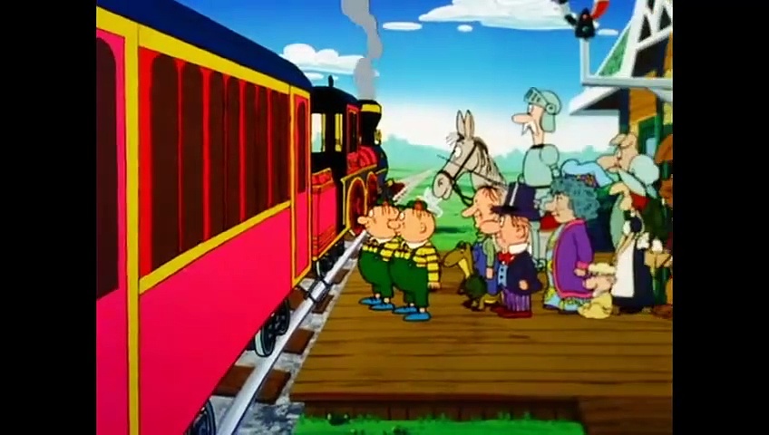 Alice unternimmt im Wunderland eine merkwürdige Bahnfahrt, bei der das große weiße Kaninchen als Platzanweiser und das Walroß als Schaffner fungieren. Im Zug trifft Alice alle wohlvertrauten Gesichter aus dem Wunderland, aber keiner kennt den Zweck der Reise. Plötzlich hebt der Zug ab, überquert einen Regenbogen und taucht dann geradewegs ins Meer ein, wo der Zug jedoch in einer Muschel steckenbleibt.