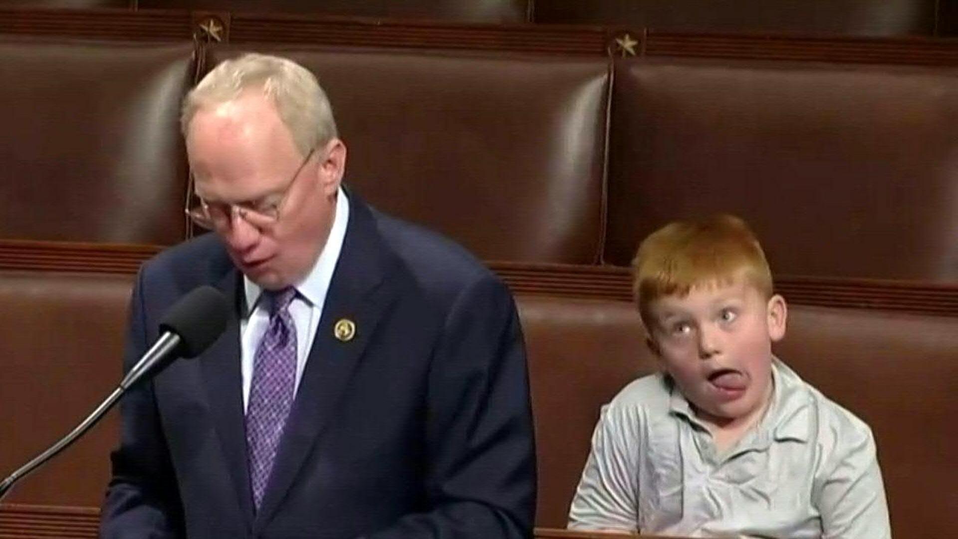 Vom Schabernack seines kleinen Sohnes bekam er gar nichts mit: Im US-Kongress ist eine Rede des Republikaners John Rose zur Nebensache geraten, weil ihm sein hinter ihm sitzender Filius die Show stahl.