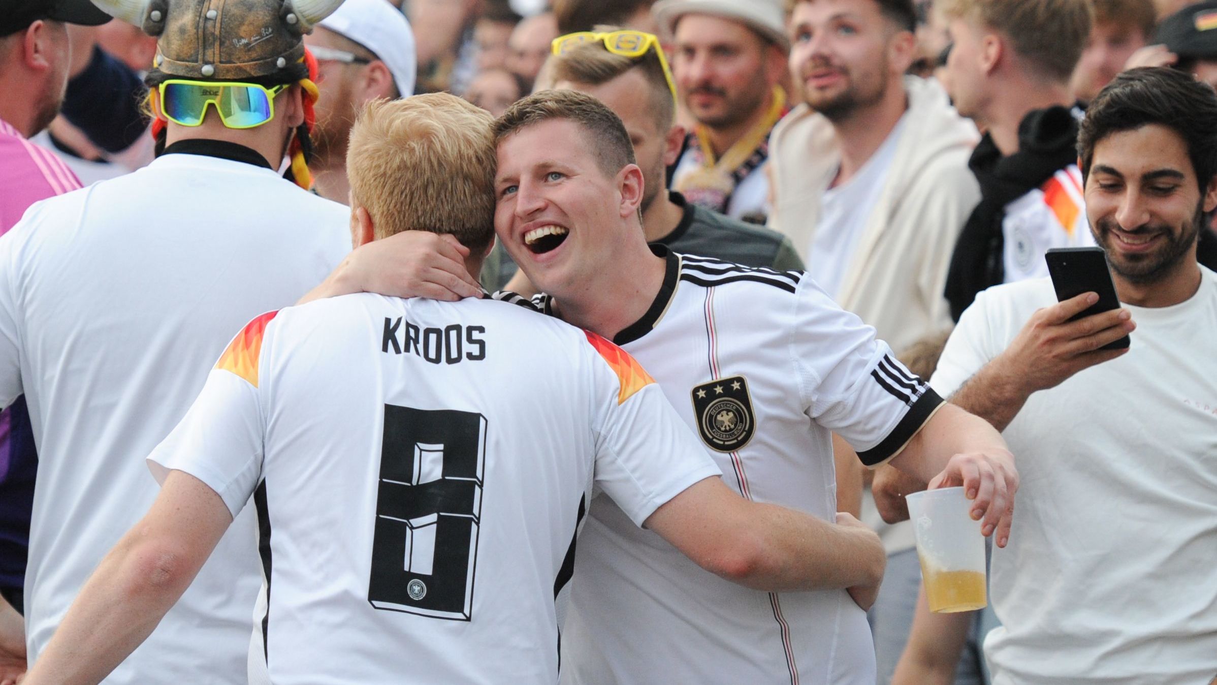 Auf zahlreichen Fan-Festen in der gesamten Republik wurde der Auftaktsieg der Deutschen gegen Schottland euphorisch gefeiert. Einige ließen sich nach dem 5:1 bereits zu einer gewagten Prognose hinreißen.
