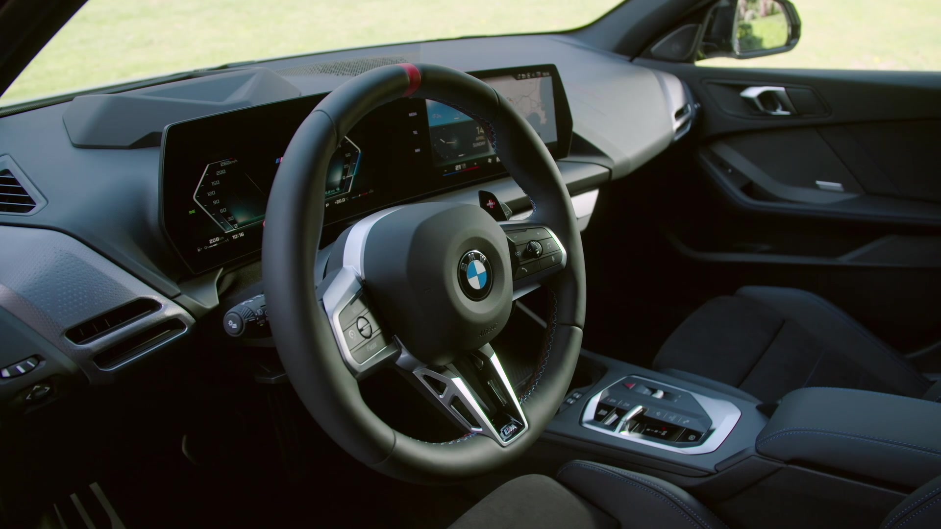 Im neugestalteten und serienmäßig komplett lederfreien Interieur bietet der neue BMW 1er ein modernes Premium-Ambiente mit sportiven Akzenten und geräumige Platzverhältnisse für bis zu fünf Insassen. Neukonstruierte Sitze bieten einen hohen Langstreckenkomfort. Optional sind Sportsitze in der Ausführung Econeer mit Bezügen und Polsterung aus kreislauffähigem Recycling-Polyester sowie M Sportsitze erhältlich. Außerdem werden perforierte Sitzoberflächen in der Ausführung Veganza mit lederähnlichen Eigenschaften angeboten. Die Ausstattung Veganza/Alcantara ist Bestandteil des M Sportpakets und der Serienausstattung im BMW M135 xDrive.<br /><br />Für alle Sitzvarianten stehen optional eine Heizfunktion und elektrische Einstellmöglichkeiten mit Memory-Funktion auf der Fahrerseite zur Wahl. Die Sportsitze und die M Sportsitze können um eine Lordosenstütze ergänzt werden. Für die Sportsitze ist außerdem eine Massagefunktion erhältlich. Zum optimierten Insassenschutz trägt nun serienmäßig auch ein Interaktionsairbag zwischen Fahrer und Beifahrer bei. Durch das Umklappen der Fondsitzlehne lässt sich das Stauvolumen unter der weit nach oben schwingenden Heckklappe von 380 Liter auf bis zu 1 200 Liter (BMW 120, BMW 120d: 300 – 1 135 Liter) erweitern.<br /><br />Hochwertige Oberflächen und Dekorleisten, der neugestaltete Gangwahlschalter und das BMW Curved Display kennzeichnen das progressive Premium-Ambiente im Interieur. Der volldigitale Anzeigenverbund setzt sich aus einem 10,25 Zoll großen Information Display und einem Control Display mit einer Bildschirmdiagonale von 10,7 Zoll zusammen. Die konsequente Digitalisierung ermöglicht eine deutliche Reduzierung der Tasten und Regler im Cockpit. Auch die Klimaanlage wird im neuen BMW 1er digital gesteuert. Alternativ zum serienmäßigen Sportlenkrad steht ein ebenfalls neugestaltetes M Lederlenkrad zur Auswahl. Es ist Bestandteil des M Sportpakets und verfügt über Schaltwippen für manuelle Gangwechsel.