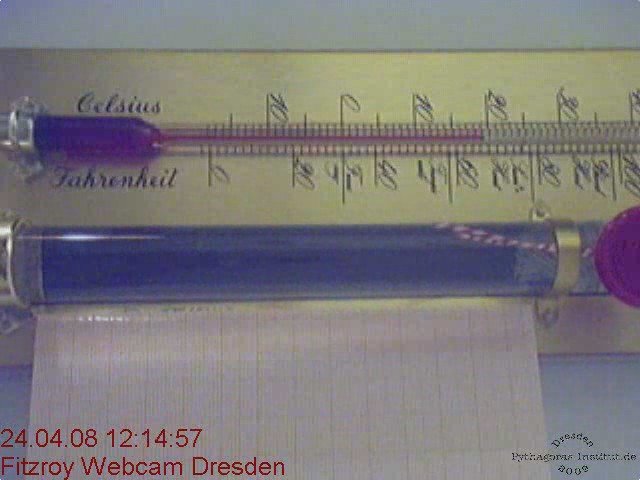 Das Fitzroysturmglas geht auf Admiral Fitzroy zurück und soll anziehende Wetterfronten vorhersagen. Es besteht aus einer empfindlichen Lösung, die hermetisch abgeschlossen ist. Somit entfällt ein Einfluß über normale Parameter wie Luftdruck und Luftfeuchte. Lediglich die Temperatur hat einen Einfluß, wie an dem Thermometer zu erkennen ist. Manche Bewegen des Kristalles erfolgt aber unabhängig von der Temperaturänderung. Nähere Informationen finden sich im Blog oder bei Wikipedia...