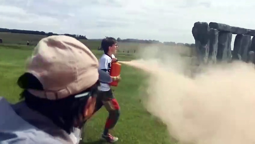 Aktivisten der Klimagruppe "Just Stop Oil" haben Stonehenge in Großbritannien mit oranger Farbe besprüht.