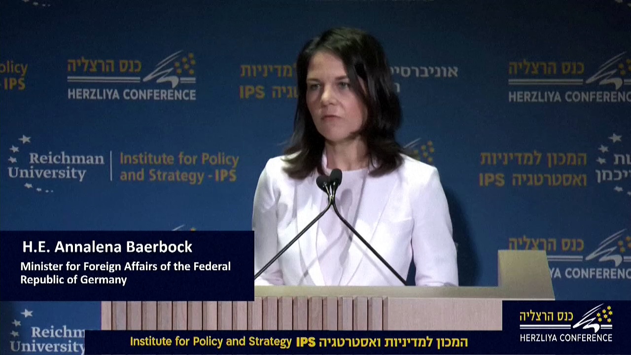 Bundesaußenministerin Annalena Baerbock (Grüne) hat bei ihrem Besuch in Israel ein Ende des Gaza-Kriegs gefordert. Der Ende Mai von US-Präsident Joe Biden vorgestellte mehrstufige Plan für eine Waffenruhe zeige einen "klaren Weg zu diesem Ziel" auf, sagte Baerbock bei einer Sicherheitskonferenz an der Reichman-Universität in der Stadt Herzlija.