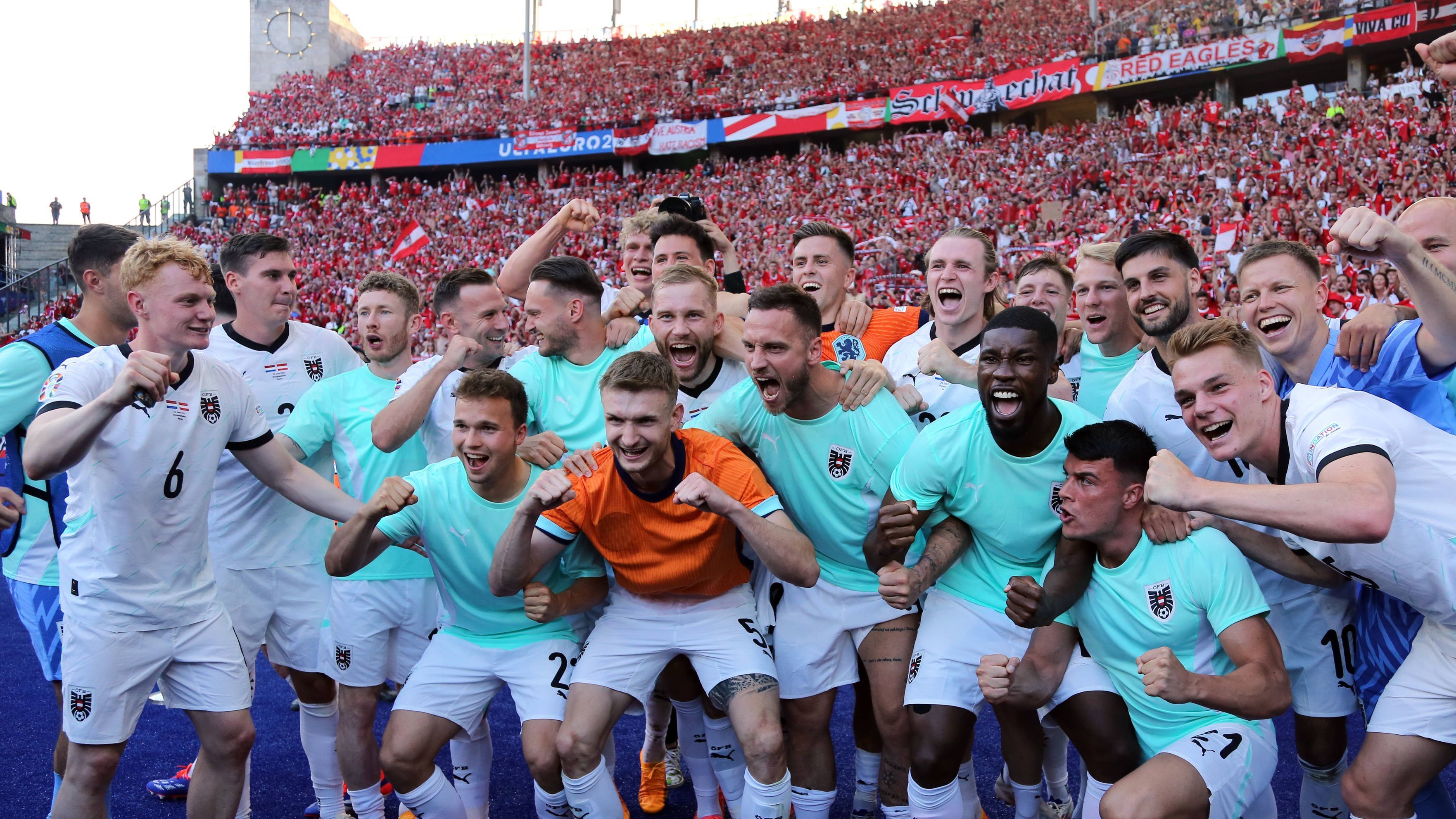 Österreich ist in Feierlaune. Nach dem Gruppensieg in der "Todesgruppe" mit Frankreich, den Niederlanden und Polen ist die Stimmung im Team von Ralf Rangnick bestens und im Bus wird ausgiebig gesungen und gefeiert.